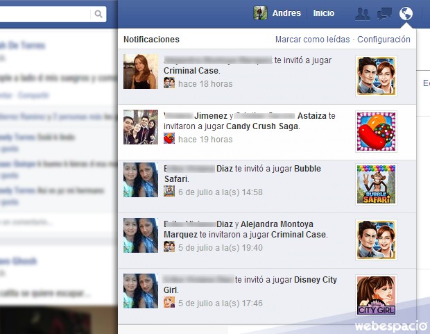 2.- Invitaciones de juegos: No hay nada más molesto que tener la bandeja de notificaciones llena de invitaciones a juegos. Muchos de ellos, ni siquiera nos interesa jugarlos son innecesarios.