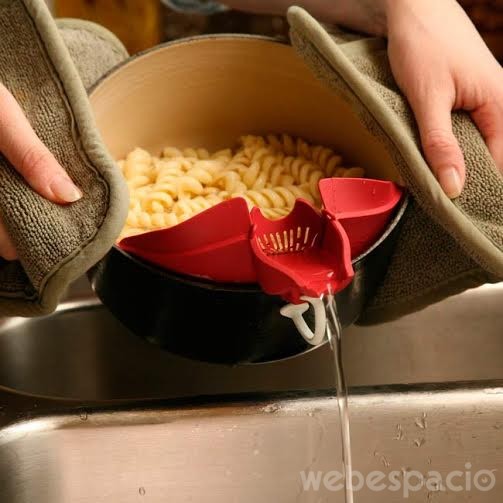 Esta cacerola tiene un peculiar tapa que te permitirá escurrir el agua de la pasta de una manera mucho más rápida y simple. Ya no tendrás que gastar en utensilios extras.