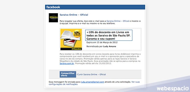 Facebook permite crear ofertas similares a cupones de descuento exclusivos que los usuarios pueden canjear en tu tienda virtual, tu tienda offline, o ambas. De esta manera estás fidelizando a tus clientes haciéndolos sentir que son importantes para ti. También te sirve para generar tráfico de alta calidad desde Facebook hacia a tu Página web Oficial. Por el momento este tipo de anuncios sólo está disponibles para páginas que tengan más de 100 “Me Gusta” y puedes crearlos directamente desde tu página en Facebook. Para conocer mas acerca de las ofertas accede al siguiente enlace: https://es-es.facebook.com/business/offers .